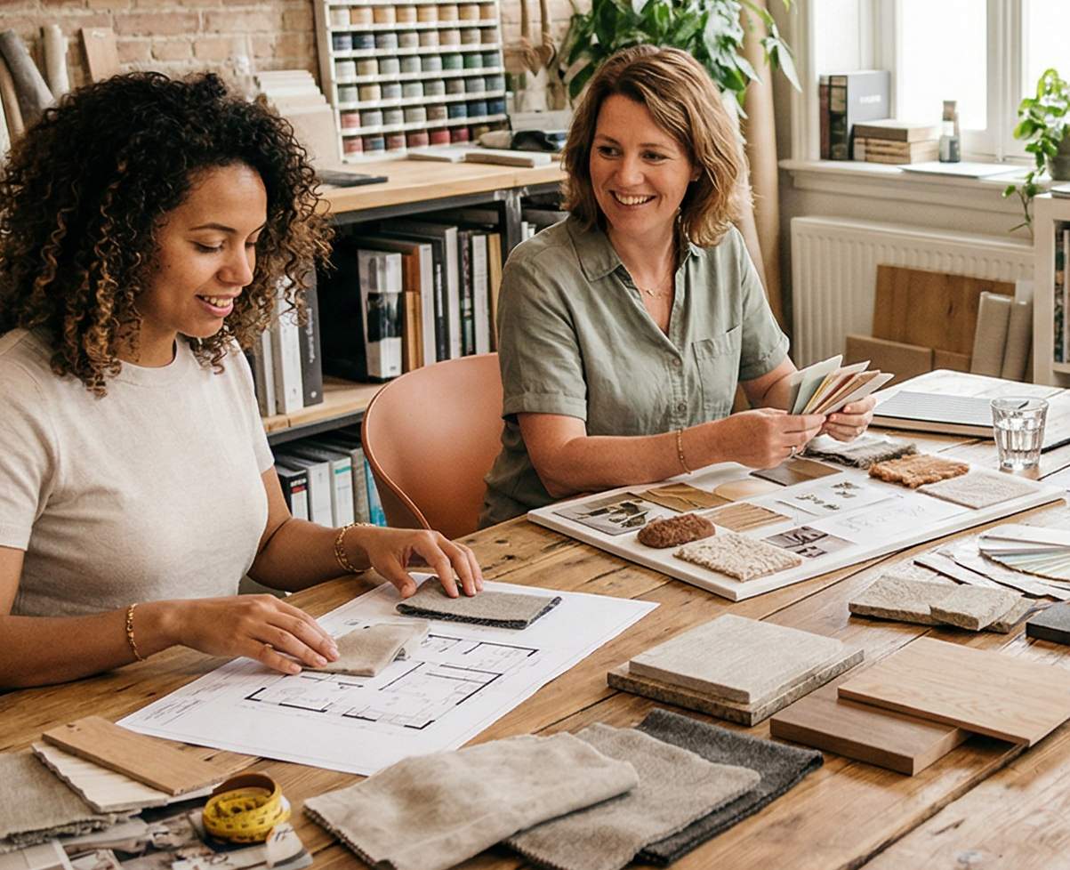 In de Design Studio ga je in een kleine groep zelf aan de slag met jouw ruimte. Je vertaalt je ideeën naar een concreet plan: van indeling en moodboard tot kleuren en materialen. Met begeleiding leer je kijken als een ontwerper en maak je keuzes die rust, overzicht en samenhang brengen in je interieur.